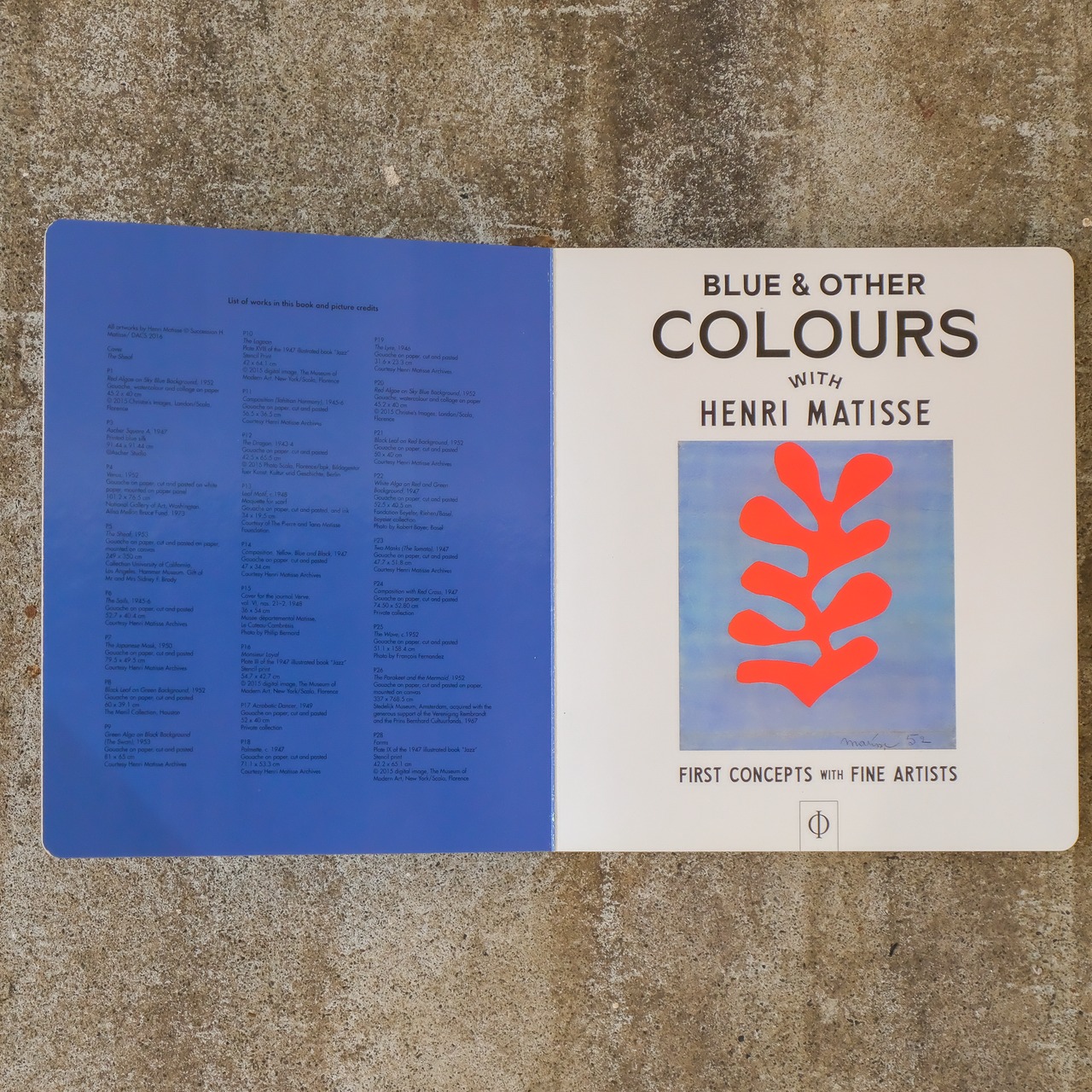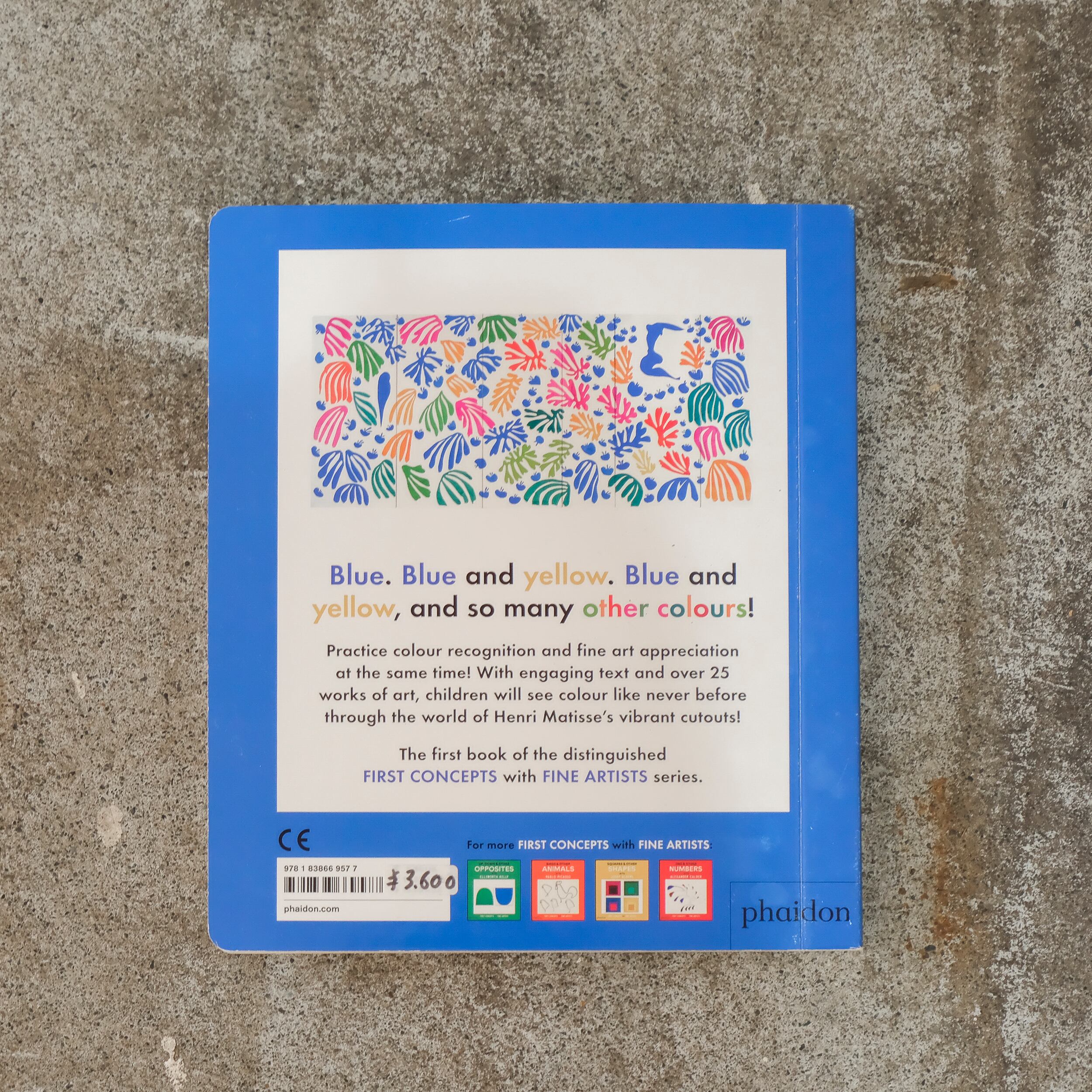 フランス人アーティスト、アンリ・マティス(Henri Matisse)の作品を用いて、1〜3歳向けに作られた絵本形式のボードブック。アンリ・マティスの切り絵作品(CUT-OUT)が描く抽象的な表現で色を学ぶ、創造力に満ちた読み聞かせ形式の一冊。