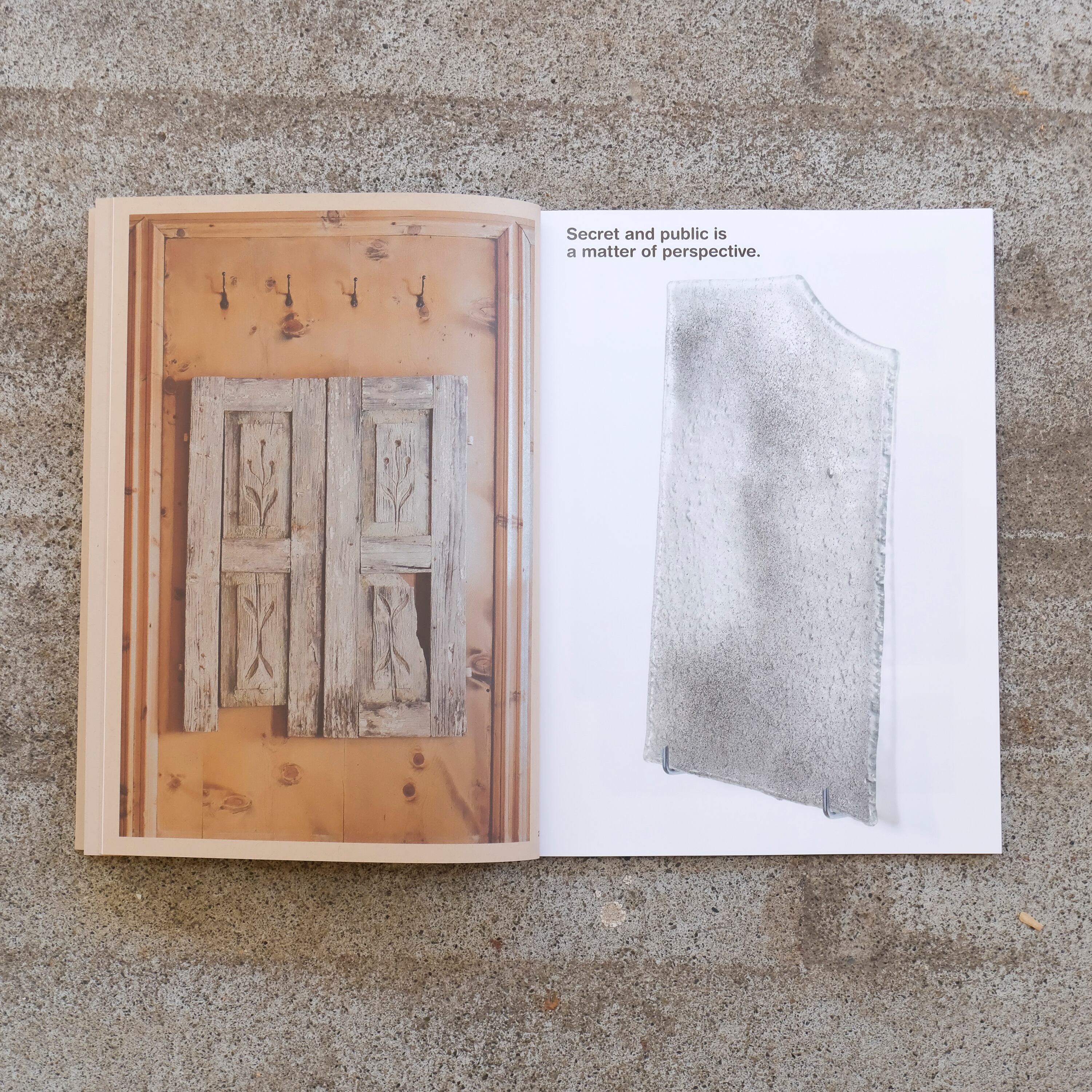 That exhibition’s title Wood and Snow is echoed in the publication’s material, which documents the exhibition on interleaved pages of white and unbleached fibre. The reader gains two perspectives on the objects when the same image is printed using distinct processes. It is unmistakably the same piece, yet appears quite different. Thus the publication undermines both the idea of a neutral space in which to exhibit objects, and photography as a means to document what an object looks like. Reality is not what we see in either image, but somewhere in between. -Publisher