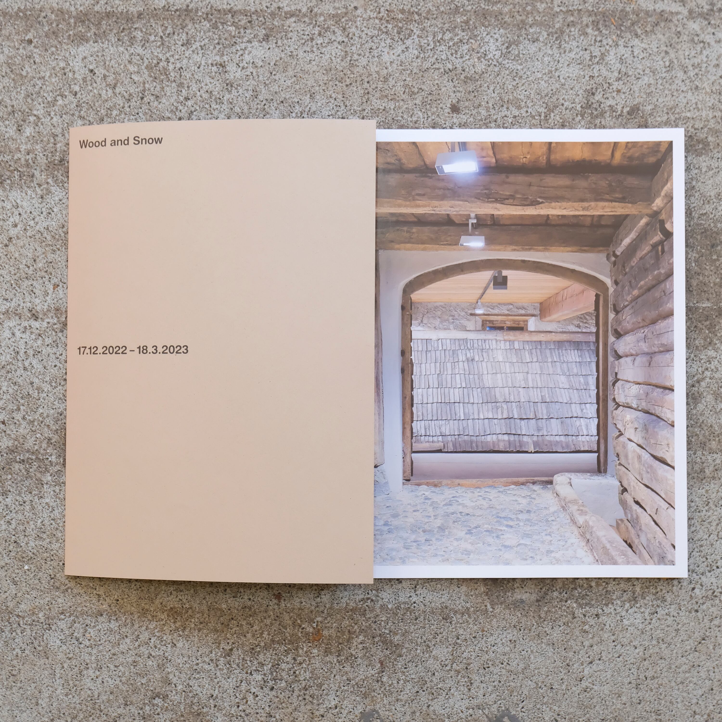 この展覧会のタイトル「木と雪」は、この出版物の資料にも反映されています。この出版物は、白と未漂白の繊維を挟み込んだページに展覧会の記録を収録しています。同じ画像が異なる印刷方法で印刷されることで、読者は作品を二つの視点から捉えることができます。紛れもなく同じ作品でありながら、全く異なる印象を与えます。このように、この出版物は、作品を展示するための中立的な空間という概念と、作品の外観を記録する手段としての写真という概念の両方を揺るがしています。現実は、どちらの画像にも写っているものではなく、その中間にあるのです。