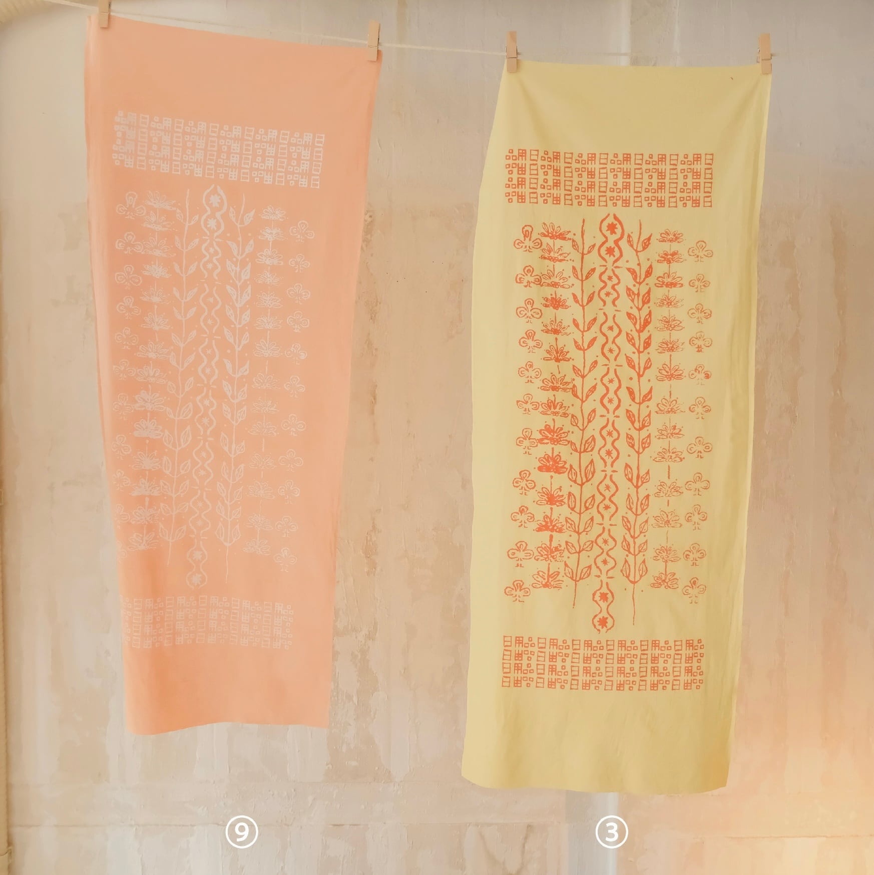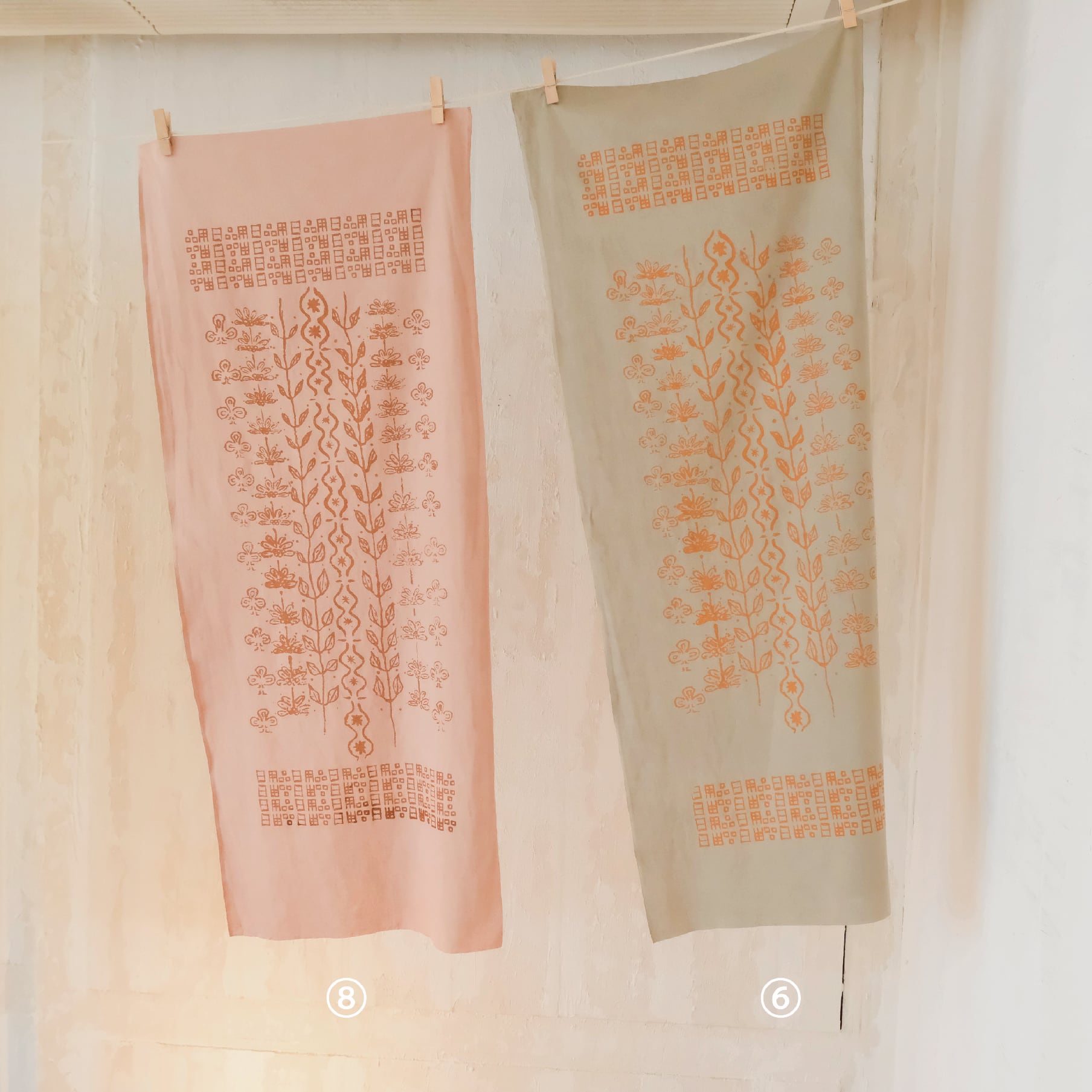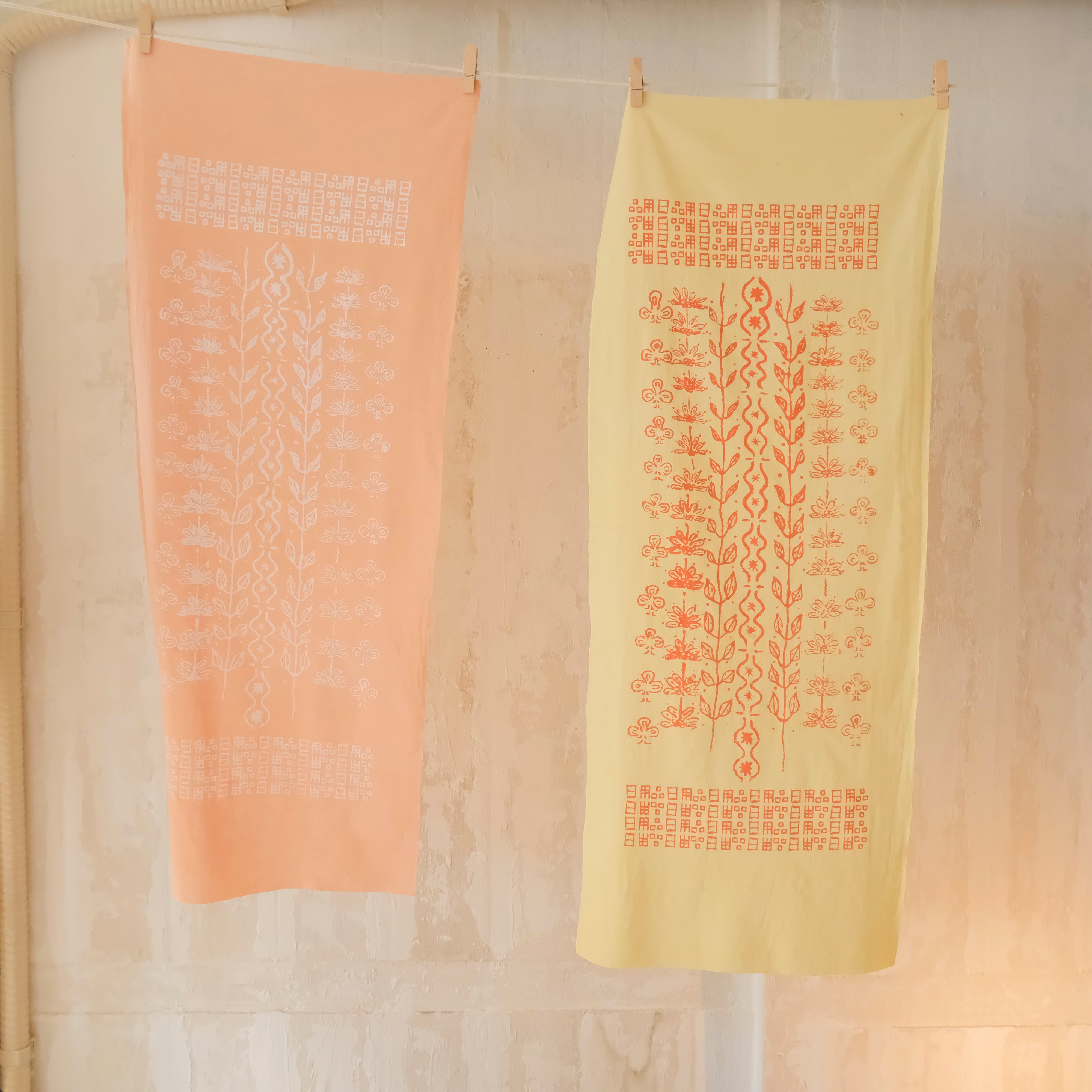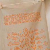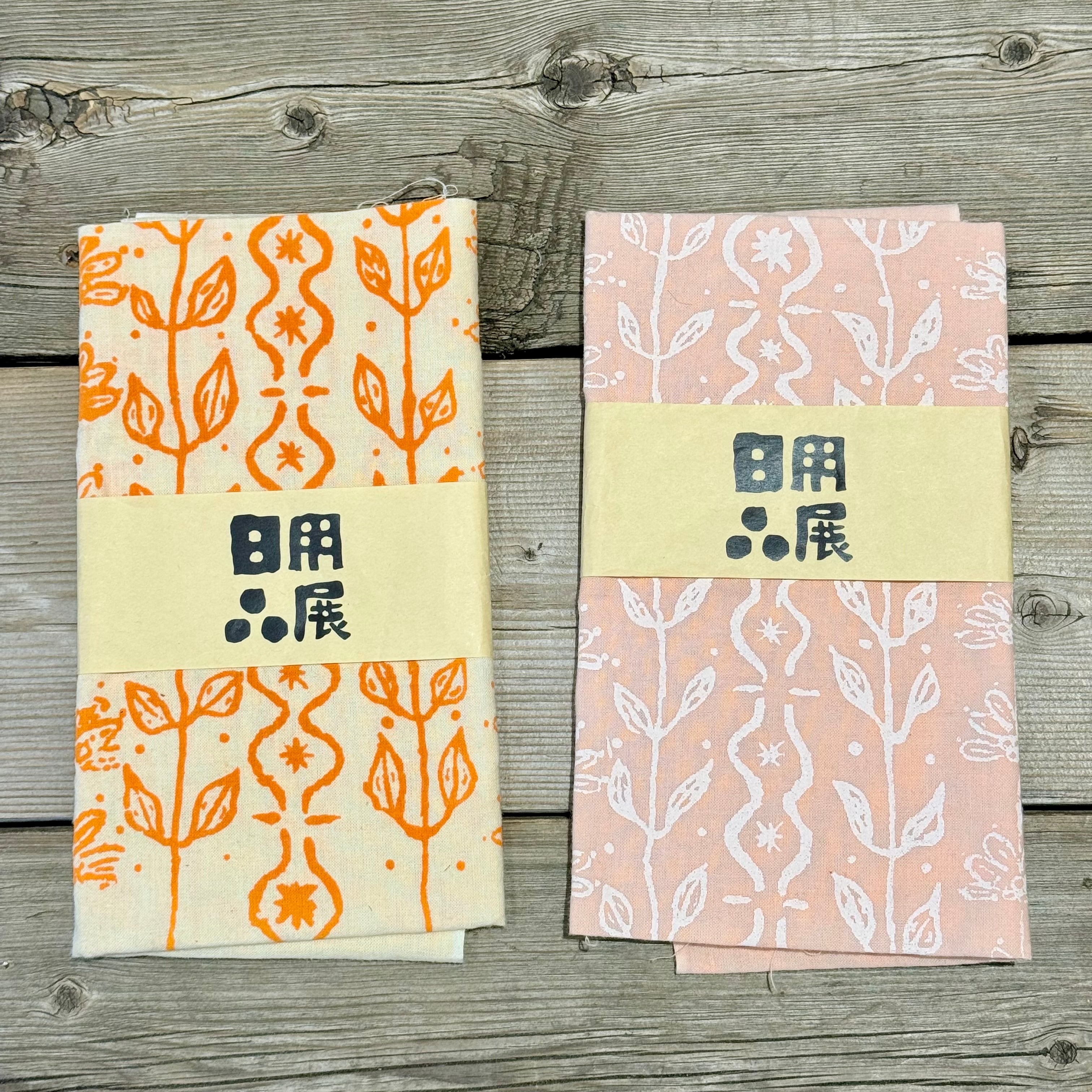 ペインター・カネダタイコウと染師・コダマによるコラボプロジェクト「日用品展」に合わせて製作された。コダマが草木染めを施した布にタイコウによるデザインがプリントされた一点物手拭いです。