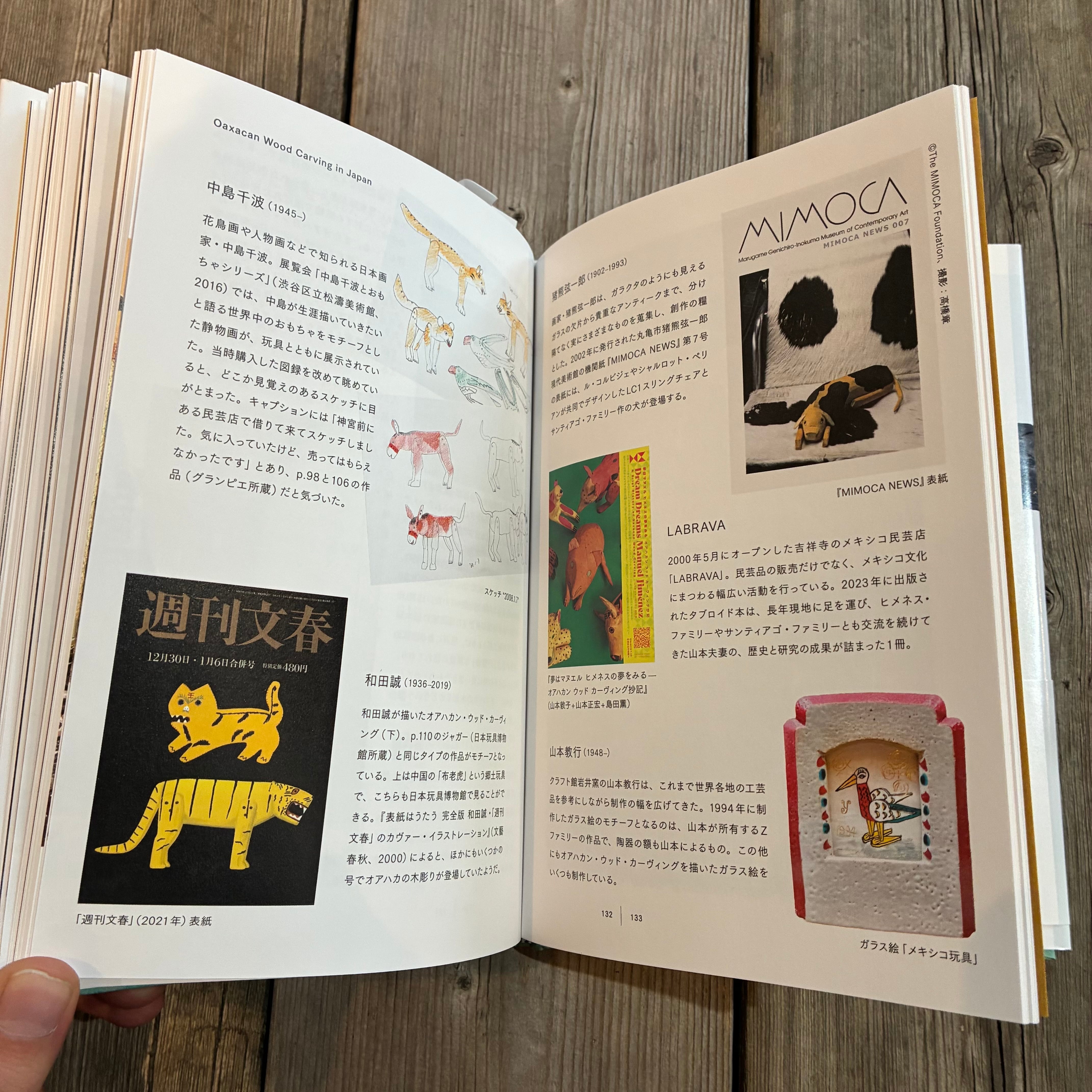 手工芸の宝庫といわれるメキシコ・オアハカ州。20世紀半ば、一人の男が作りはじめた木彫りの動物たちに、ミッドセンチュリーを代表するデザイナー、アレキサンダー・ジラードが早くから注目した。今ではメキシコを代表する工芸品となったオアハカン・ウッド・カーヴィングだが、初期のものはマチェテ(山刀)を使った粗い彫りと、釘で打ちつけただけの手足や尻尾、アニリン染料の味わい深い褪色など、なんとも言えずおおらかで、日本でも多くの作り手に愛された。本書では、濱田庄司・堀内誠一・柚木沙弥郎・柳宗理・山本教行らの蒐集品を含む130点の動物たちを紹介する。